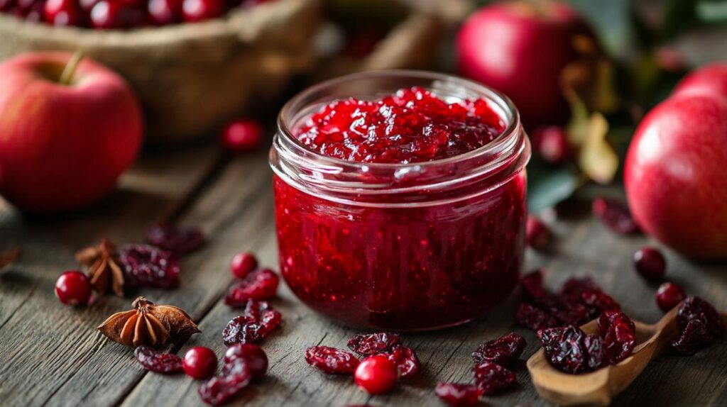 Pour réaliser environ un pot de confiture, il suffit de rassembler une demi-tasse de canneberges séchées sucrées au jus de pomme, soit environ huit cuillères à soupe, et trois pommes pelées et coupées en morceaux. Ces deux ingrédients de base peuvent être agrémentés d'épices optionnelles telles que la cannelle ou la vanille, qui apporteront des notes chaleureuses et parfumées à la préparation. Certaines variantes proposent également l'ajout de romarin pour une touche aromatique originale. Pour les confitures allégées en sucre, on peut utiliser environ 300 grammes de sucre pour un kilogramme de fruits, complétés par une cuillère à café d'agar-agar qui assure la prise de la confiture grâce à son pouvoir gélifiant naturel. Le jus d'un demi-citron peut également être incorporé pour relever les saveurs et préserver la couleur des fruits.